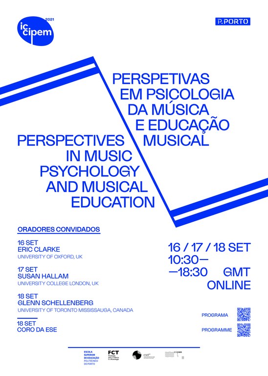 A IC CIPEM 2021 reúne 130 investigadores de 16 países, envolvidos no ensino, performance e composição, que vão debater temas atuais em psicologia da música e educação musical. O Programa inclui três oradores principais (Eric Clarke e Susan Hallam, do Reino Unido, e Glenn Schellenberg, do Canadá), e 106 autores apresentando 70 comunicações em sessões paralelas, 3 mesas-redondas e 7 posters. As apresentações em Português e Inglês refletem a intenção inclusiva do evento.