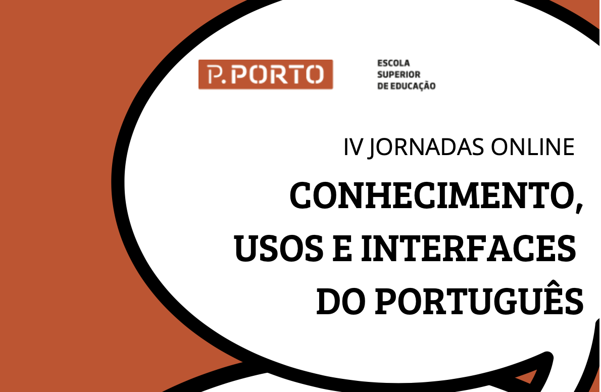 As IV Jornadas online de Conhecimento, Usos e Interfaces do Português realizam-se em dois momentos, nos dias 16/12/2022 e 4 e 5/1/2023, no âmbito das UC de Conhecimento e Usos do Português, do Mestrado em Educação Pré-Escolar e Ensino do 1.º CEB, e de Cultura Linguística no Ensino do Português, do Mestrado em Ensino do 1.º CEB e de Português e História e Geografia de Portugal no 2.º CEB.