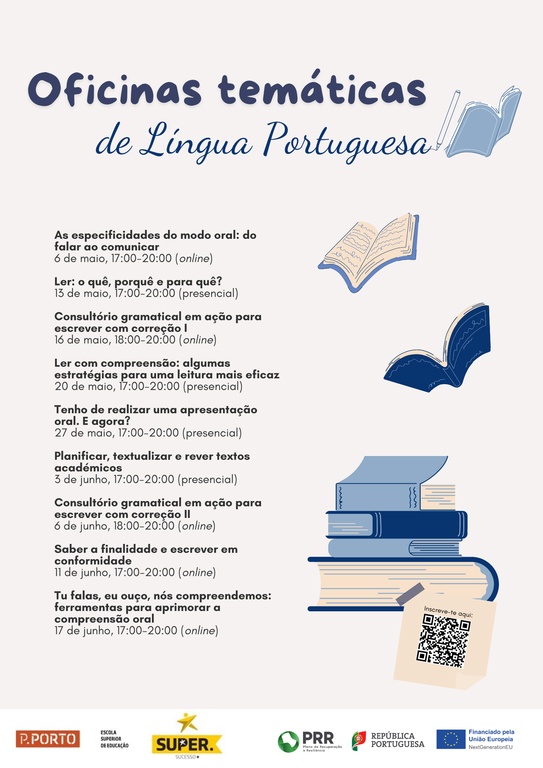 De 6 de maio a 17 de junho de 2024, a Escola Superior de Educação do Porto ajuda-te a desenvolver as tuas competências de produção e expressão, na oralidade e na escrita.